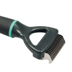 Met zijn 16 scherpe roestvrij stalen tanden snijdt deze kam gemakkelijk klitten en verviltingen uit de vacht van de hond. Het haar wordt glad gemaakt en ontward. Ook geschikt voor zeer dichte vachten en vachten met sterk dekhaar. De afgeronde punten en de speciale tandvorm zorgen voor de grootst mogelijke veiligheid voor hond en mens tijdens het gebruik.