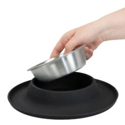 Vuile vloeren behoren tot het verleden met deze voerbak. De bak van roestvrij staal heeft namelijk een grote, uitneembare lekbescherming van siliconen. Zo blijft de vloer schoon als uw hond knoeit tijdens het eten of drinken. De antislip-onderkant voorkomt ook krassen op de vloer. Om te vullen of schoon te maken, verwijdert u eenvoudig de lekbescherming. (roestvrijstalen bak vaatwasmachinebestendig)