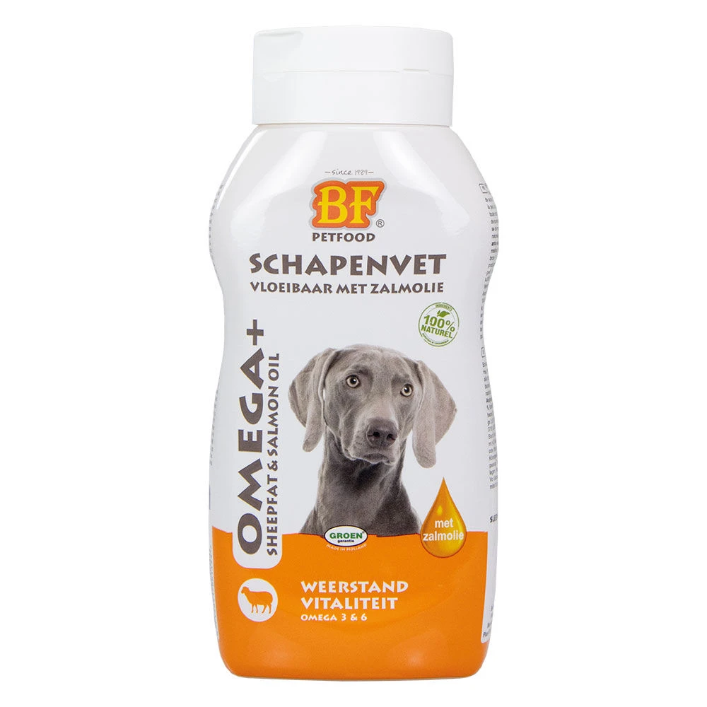 Deze mix met hoogwaardig, gereinigd schapenvet levert een evenwichtig spectrum aan essentiële omega-vetzuren. Daarom is Biofood vloeibaar schapenvet een waardevol voedingssupplement voor honden van alle rassen met vacht- en huidproblemen.