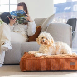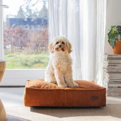 Op dit superzachte, behaaglijke kussen van geribde stof kan uw hond heerlijk uitrusten, slapen en dromen. Hij heeft het verdiend! Door de dikke vlokkenvulling is het kussen bijzonder comfortabel en behoudt het zijn vorm. De corduroy-look in 2 trendkleuren past ook nog eens uitstekend in elke moderne inrichting. De onderkant is speciaal gecoat om verschuiven te voorkomen. Dankzij de rits kan de hoes verwijderd en op 30 °C in de wasmachine gewassen worden.