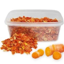 Deze knapperig krokante wortel-flakes zijn ideaal om het blikvoer van uw hond nog gezonder te maken. Want wortel-flakes bevatten naast vele gezonde wortels, kostbare granen en vele noodzakelijke vitaminen. Daarmee garneert u ieder hoofdmenu tot een gezonde, lekkere maaltijd.