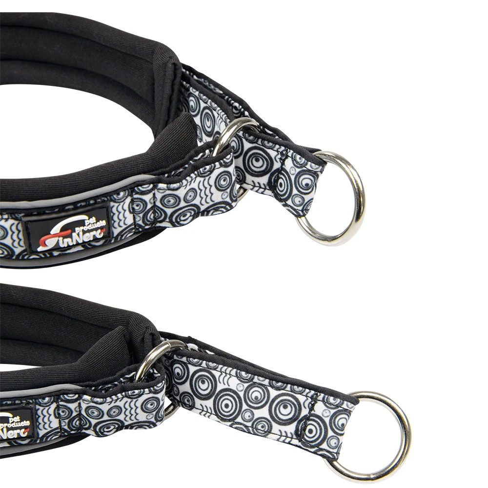 Alle Finnero lijnen, halsbanden en tuigjes kenmerken zich door hun lage gewicht. Dit komt omdat ze niet zijn gemaakt van het gebruikelijke grove nylon, maar van tot wel 6 lagen fijne polyesterweefsels. Dit zorgt voor een uitstekende belastbaarheid terwijl het materiaal zacht, flexibel en klein is op te vouwen. Diverse reflecterende elementen verhogen de zichtbaarheid en daarmee de veiligheid. Zachte neopreen onderlagen op de handlussen van de lijnen en op de beschermende halsbanden zorgen voor uitstekend comfort. Al met al biedt Finnero Ocean Sport u een modern, gemakkelijk te onderhouden en zeer praktisch assortiment mooie, tijdloze lijnen, halsbanden en tuigjes voor uw hond.