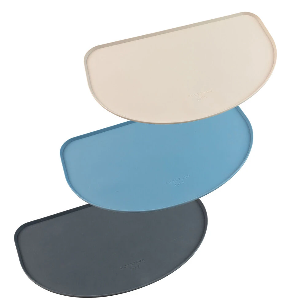 Met deze stijlvolle siliconen voerbakmat blijft de voerplek van uw hond mooi schoon, ook als er wordt geknoeid tijdens het eten of drinken. De basis is gemaakt van voedselveilige silicone. Het zachte materiaal is antislip en voorkomt onaangename krassende geluiden op de vloer. De ongeveer 1 cm hoge rand voorkomt bovendien dat gemorst water of voedsel alsnog op de vloer terechtkomt. Door de ronde vorm van de mat kan uw hond een comfortabele houding aannemen tijdens het eten en drinken.
