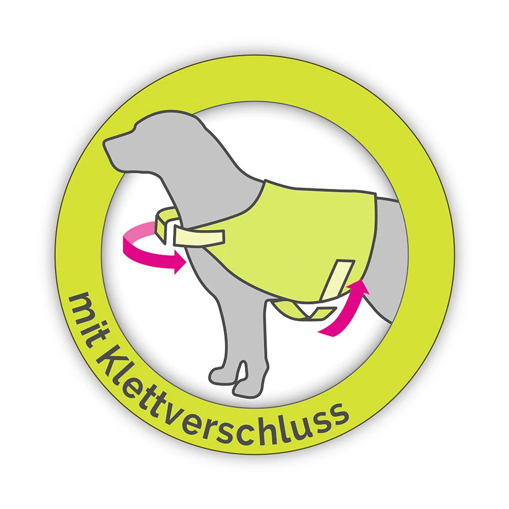 Fluorescerend hondenvest met reflecterende elementen. Simpel en snel over de rug leggen en met 2 klittenbandstroken flexibel vastmaken. Het grote vlak van een hondenvest is vaak veel beter te zien dan een klein veiligheidslampje. Ook een goed idee voor extra veiligheid!