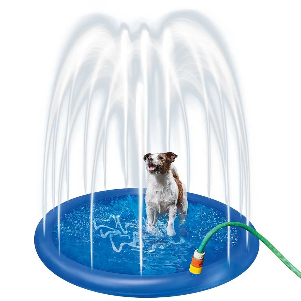 De perfecte verkoeling voor elke hond. De temperaturen lopen op, er zijn steeds meer warme dagen en veel honden lijden erg onder de hitte. Met deze sprinklermat laat u uw viervoeter heerlijk afkoelen wanneer hij daar behoefte aan heeft. Sluit de mat eenvoudig aan op een waterslang en draai de kraan iets open, tot het op de mat ‘regent’. Nu kan uw kleine viervoeter rondrennen, zich opfrissen en zijn vacht heerlijk koel laten natregenen.