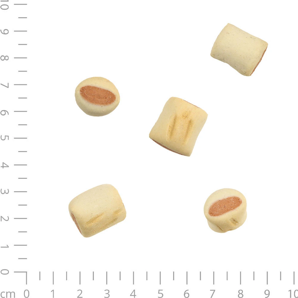 Deze krokante mini-biscuitjes van granen met een lekkere gevogeltevulling zijn ideaal als beloning te geven aan uw hond. Ze zijn niet vettig en kruimelen niet.