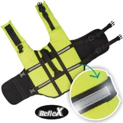 Goed zichtbare zwemhulp voor iedere hond op het strand of op een boot. Ook honden kunnen zichzelf en hun vaardigheden overschatten of overboord slaan. Dit vest biedt extra drijfvermogen en daarmee veiligheid overal op het water. Met behulp van verstelbare kliksluitingen bij de hals en de buik is het vest snel aan te brengen. Reflectorstrepen aan weerskanten vergroten de zichtbaarheid. Wasbaar op 30 °C.