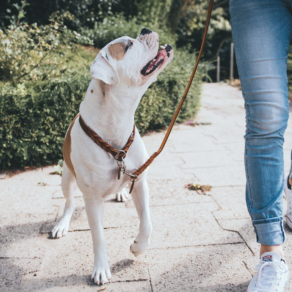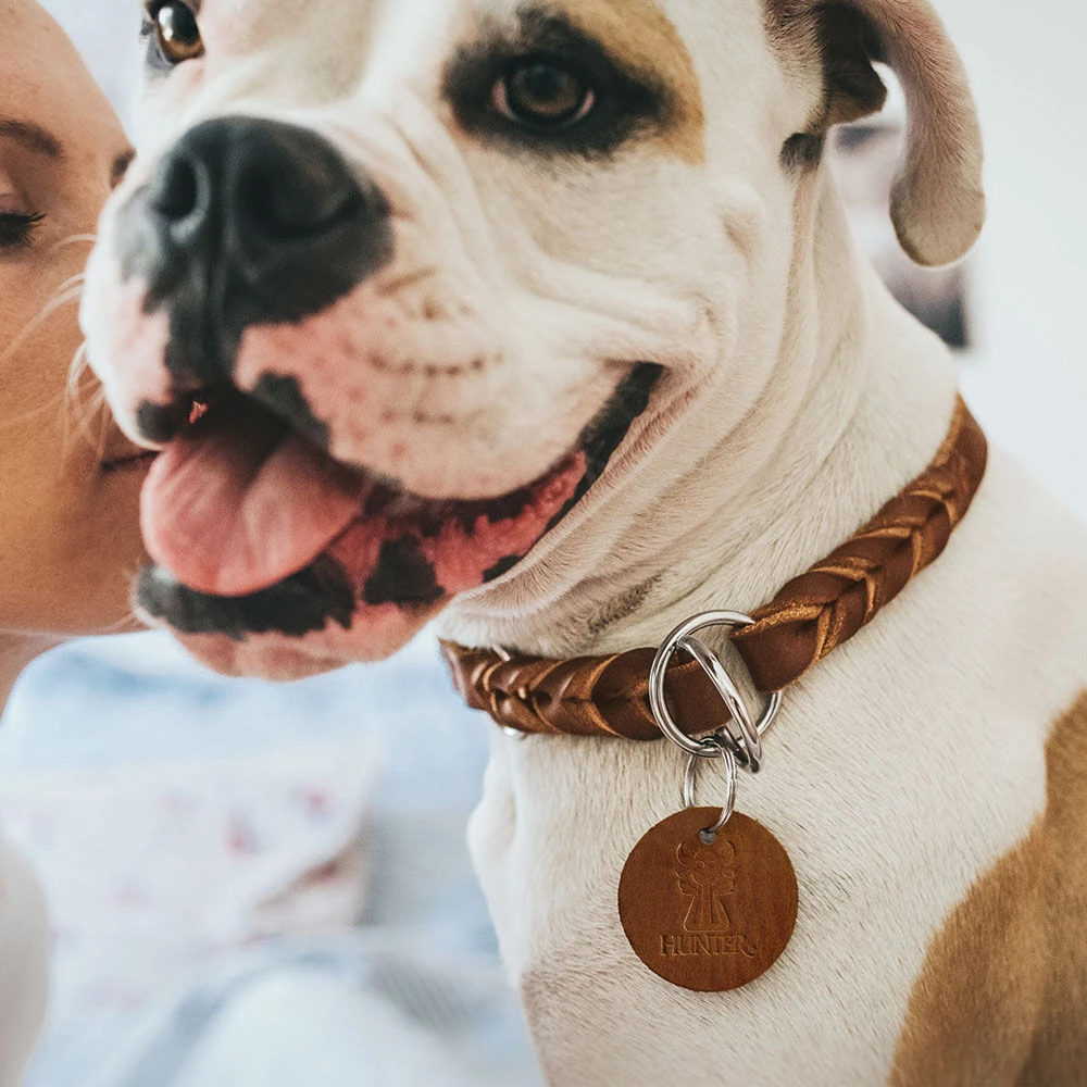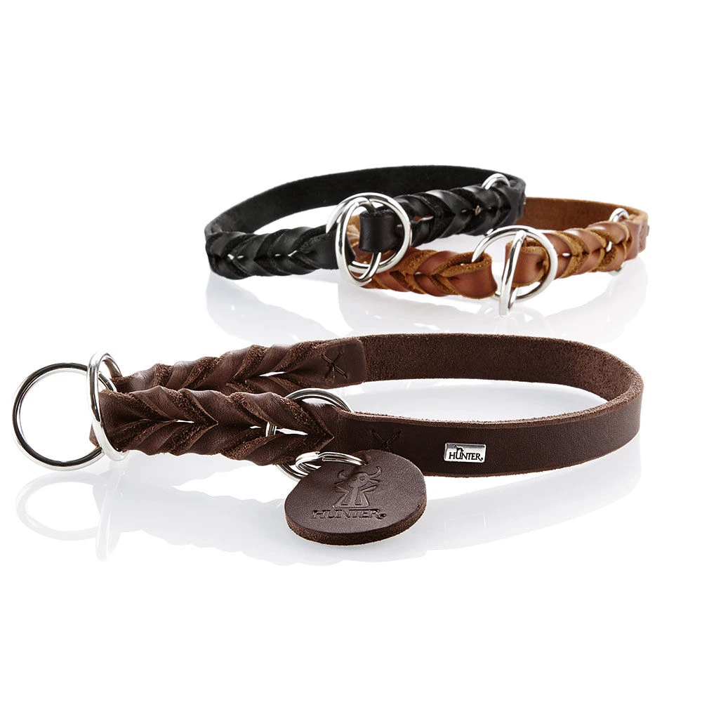 Zacht, stevig rundleer met afgeronde randen. Voorzien van met de hand gevlochten elementen. Perfecte, duurzame hondenhalsbanden ‘made in Germany’ in 3 kleuren. De breedte van 18 mm geeft voldoende veiligheidsreserve voor middelgrote tot grote honden.