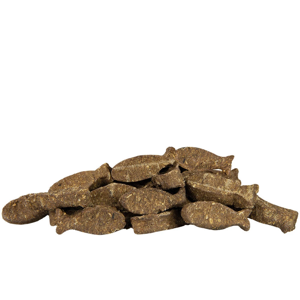 Deze lekkere proteïne-snack van 100% vis zal ook uw hond weten te waarderen. SNACKFISH is een zuiver natuurproduct, dat uitsluitend gemaakt wordt van vers gevangen IJslandse vis. Een speciale verwerkingsmethode zorgt ervoor, dat de waardevolle analytische bestanddelen van de vis bijzonder goed behouden blijven. IJslandse vis bevat extreem veel onverzadigde vetzuren, zoals Omega 3 + 6, en is daarmee een must voor honden, die een mooie, gezonde huid en vacht willen hebben. Overigens ook honden met allergieën verdragen deze vissnack meestal bijzonder goed – probeer het eens!