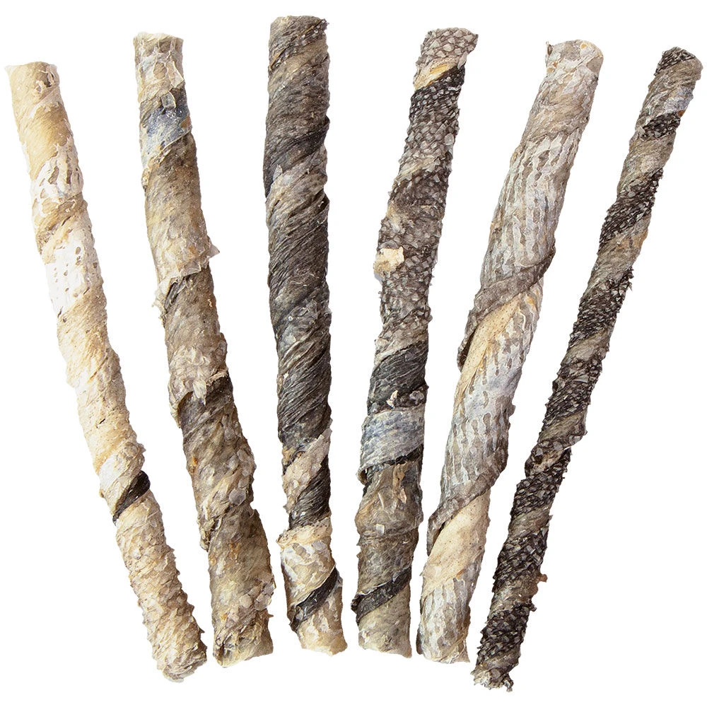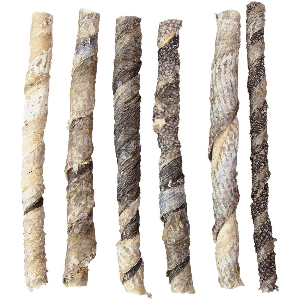 Knabbelsticks uit de huid van de wilde kabeljauw. De ca.12 cm lange sticks zijn ook geschikt voor kleine rassen en voor honden die niet meer op harde snacks mogen kauwen. Een echte lekkernij.