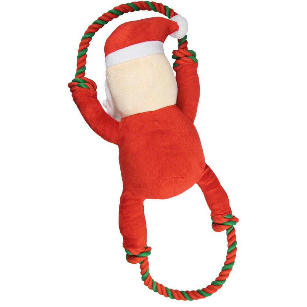 Zeer hoogwaardig hondenspeelgoed voor de kerst- en wintertijd. De rijkelijk versierde pluchen figuurtjes hebben elk 2 stuks katoenen touw waar uw hond perfect aan kan trekken zonder dat zijn scherpe tanden schade aanrichten. Hoe dan ook, dit speelgoed is stoer! Maar de kleurrijke katoenen touwen dienen ook een ander praktisch doel, want de touwen reinigen op speelse wijze de tanden door tandplak en vuil af te schrapen. Wasbaar op 30 °C.