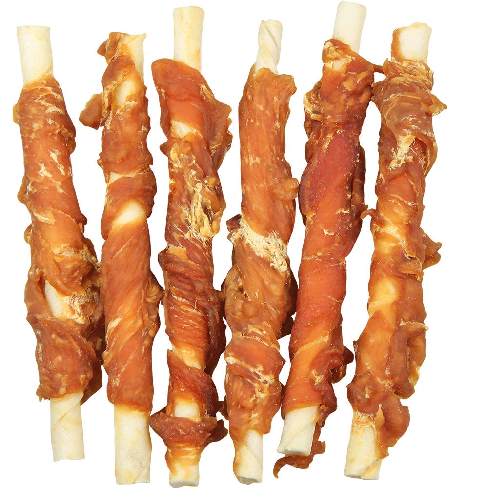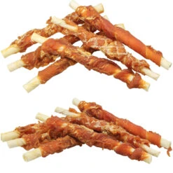 De perfecte combinatie van fijn en hard! Ca. 12 cm lange, gedraaide kauwsticks van runderhuid, omwikkeld met verse kipfilet. Licht gedroogd, vetarm en goed verteerbaar. Een uitstekend idee voor een lekkere hondensnack!