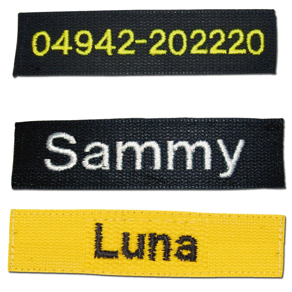 Klittenbandstrookjes voor bevestiging op het hondentuigje of de tasjes.