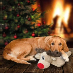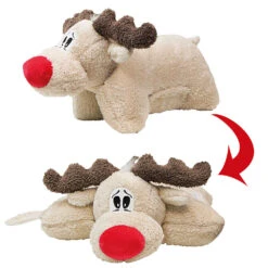 Een kussen in kerstsfeer dat ook geschikt is als speelgoed. Door de klittenbandsluiting verander je het platte kussen in een wat rondere eland.