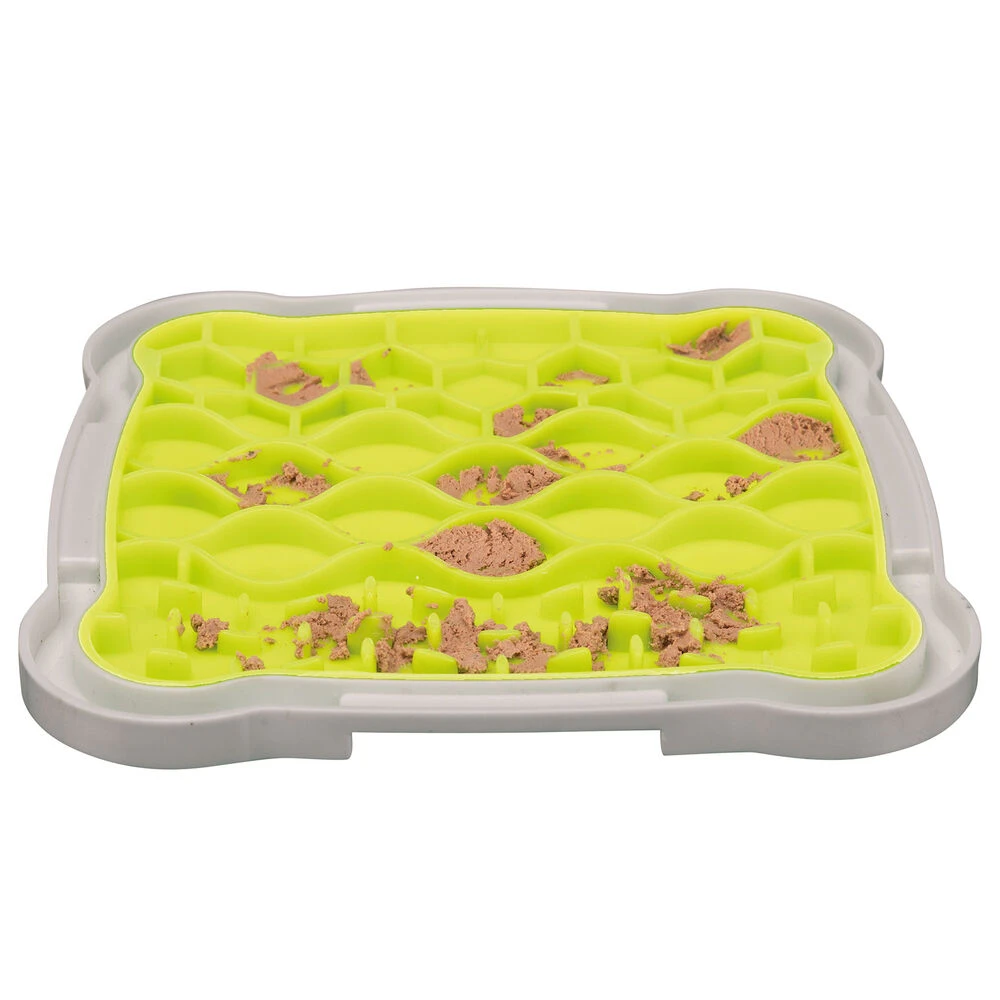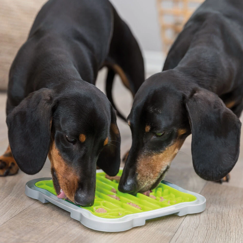 Honden likken graag. Het kalmeert en ontspant onze viervoeters. Op de antislip-likplaat Lick’n Snack kan bijv. pasta of natvoer aangebracht worden. (Tip: probeer het eens met kwark of yoghurt!) De praktische rand vangt, indien nodig, vloeistoffen op.