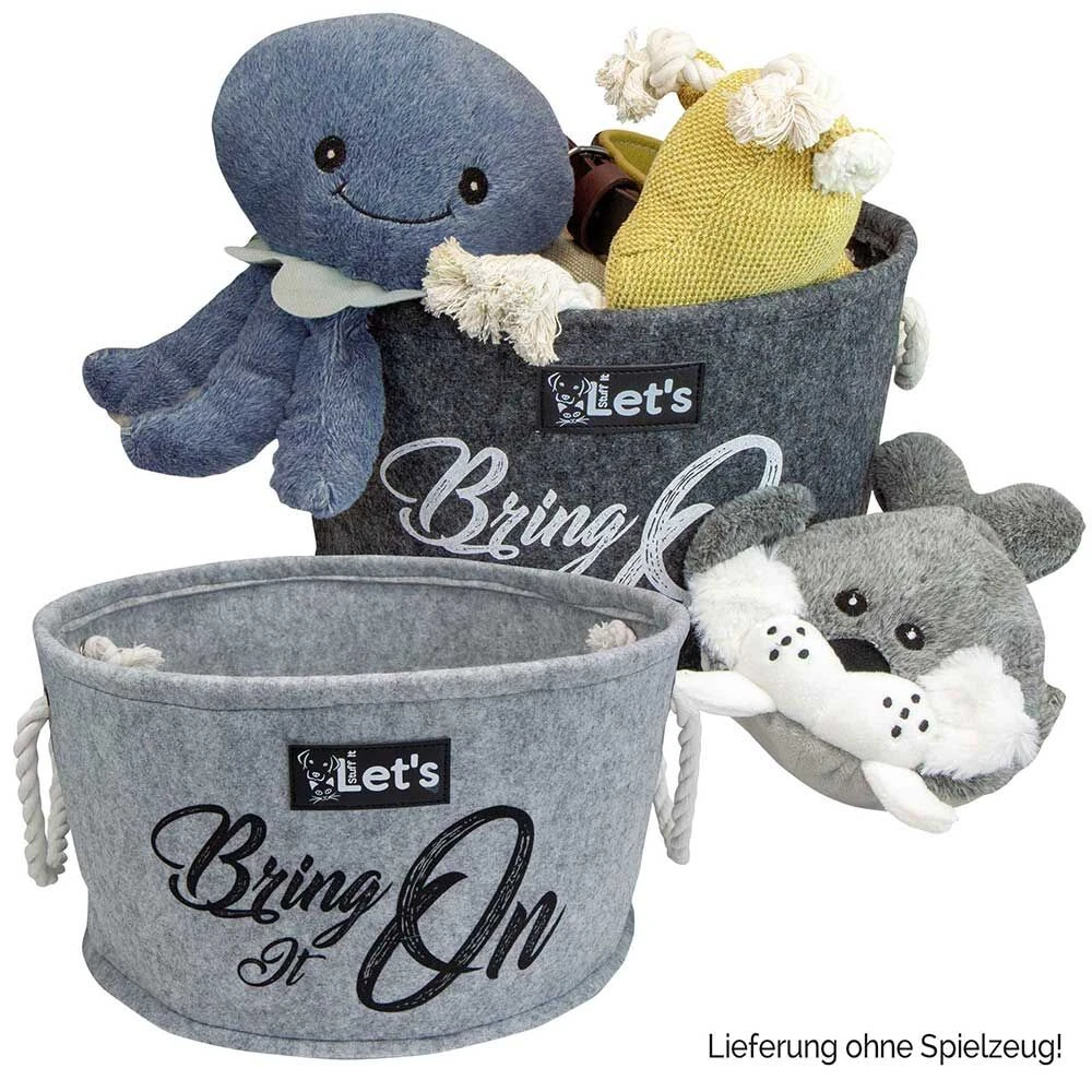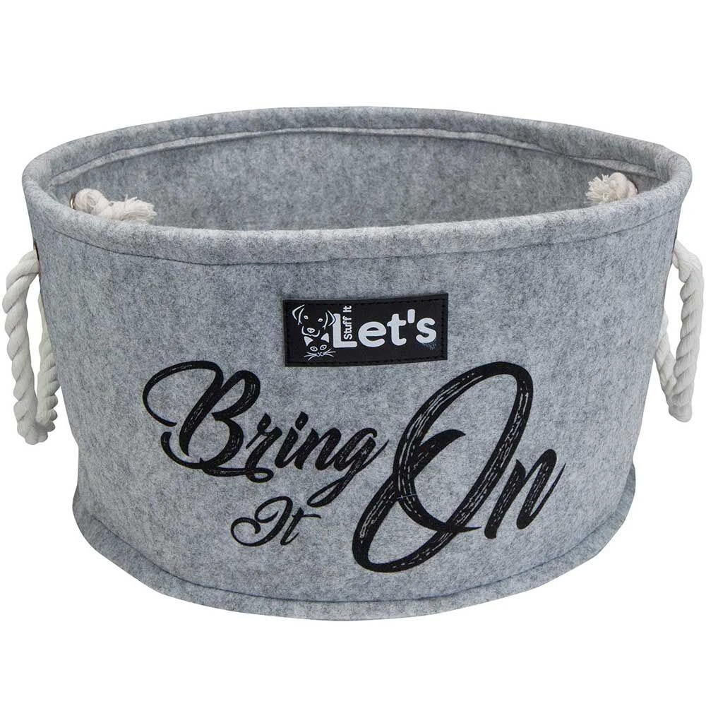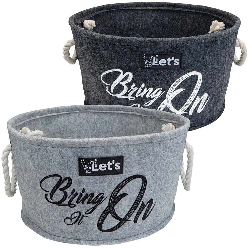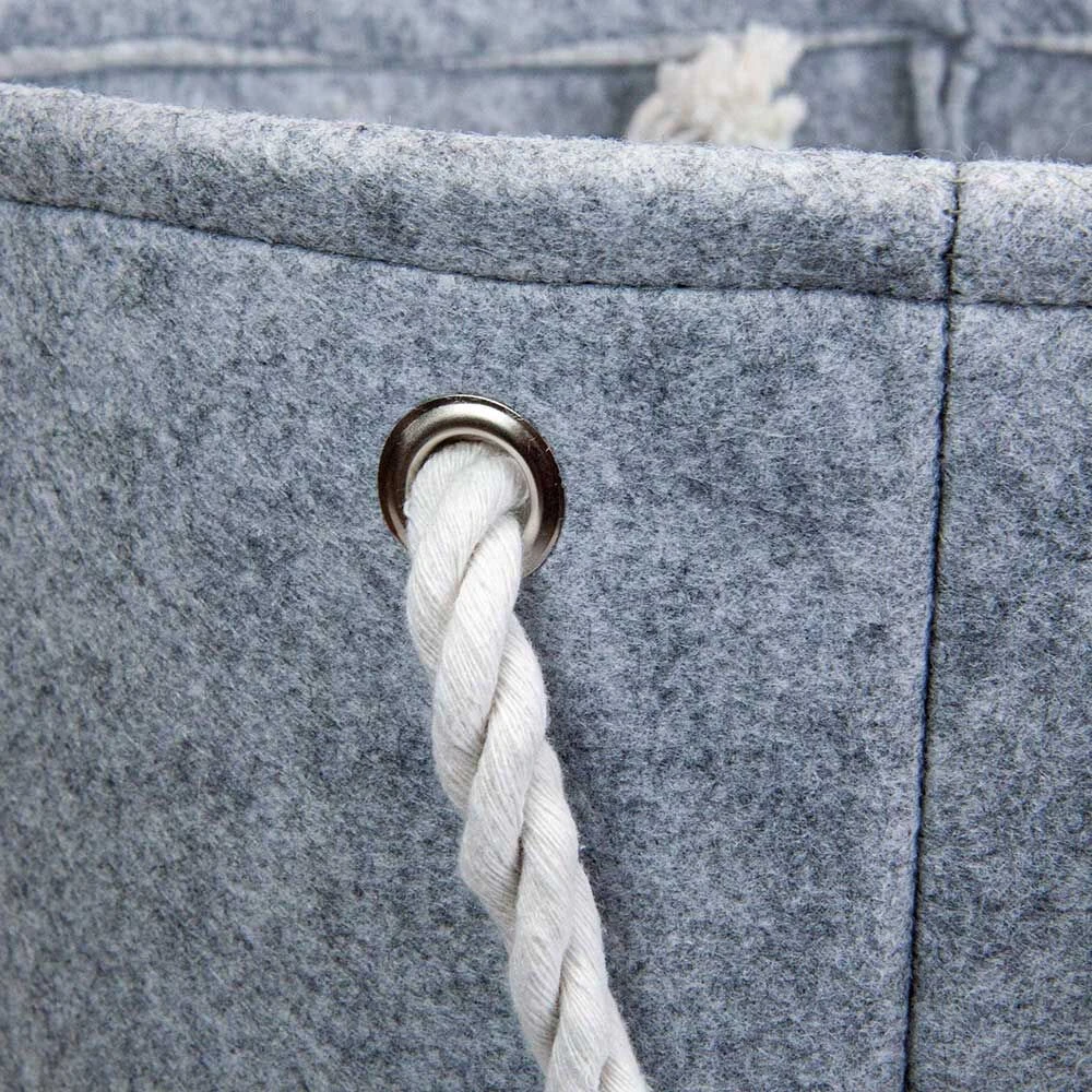 Decoratieve, ronde mand van luxueus aandoend vilt. Een praktische en vlotte opruimhulp die gezien mag worden! Van 100% hygiënische polyester met katoenen koorden.