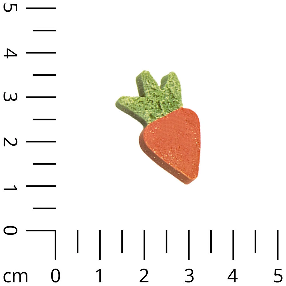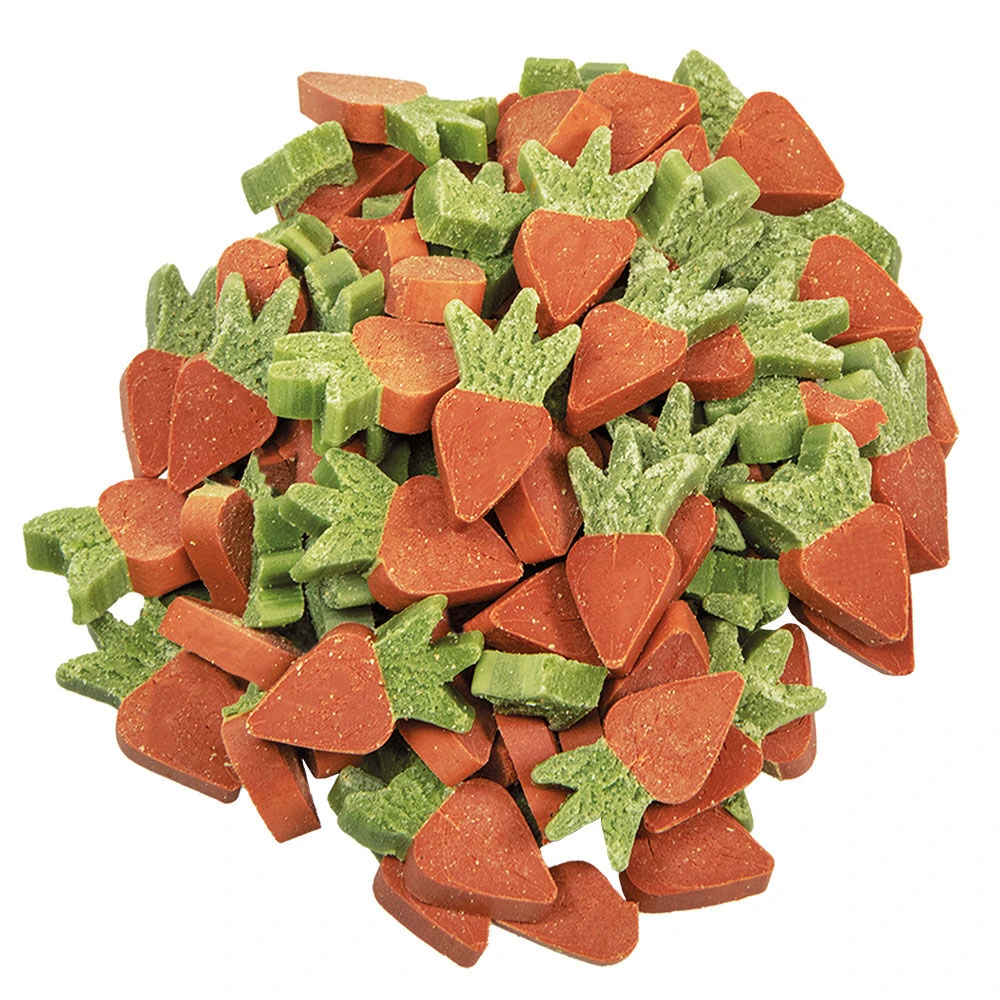 Superkleine, zachte soft-snacks met wortelpulp. Deze schattige worteltjes zijn een perfecte traktatie omdat ze relatief weinig vet bevatten (slechts 4%). De mini-wortels zijn ook perfect te gebruiken voor de hondentraining.