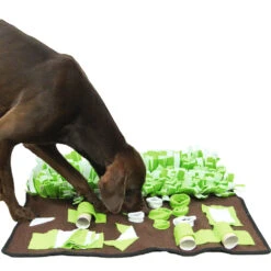Bestaand uit een ca. 80 x 40 cm grote snuffelweide en een even groot vlak met meer dan 20 verstopmogelijkheden voor een lekkere traktatie in 8 verschillende variaties.