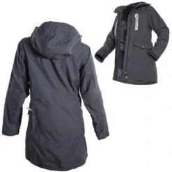 Lichte water- en winddichte damesparka. De lange zomerjas in parkastijl heeft vele praktische zakken, een capuchon en een hoogwaardige ritssluiting voor. Een perfecte jas tijdens de wandelingen en of trainingen met hond.