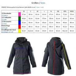 Extra lang belijnde damesparka met warme wattering en afneembare capuchon. Van modieuze structuurstof. Water- en winddicht door de ventilerende coating en getapete naden. Met vele praktische zakken en hoogwaardige YKK 2-weg-ritssluiting. Ondanks de dikke voering voelt de jas licht aan.