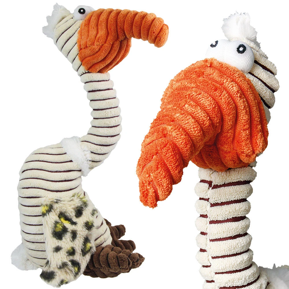Honden kunnen de meeste kleuren niet of alleen zeer slecht zien. Deze wat mollige gier heeft echter fijne, afwisselende lichte en donkere strepen. Daardoor kan onze viervoeter dit speeltje van zachte pluche uitstekend zien. Een schattig speeltje voor middelgrote tot grotere honden.