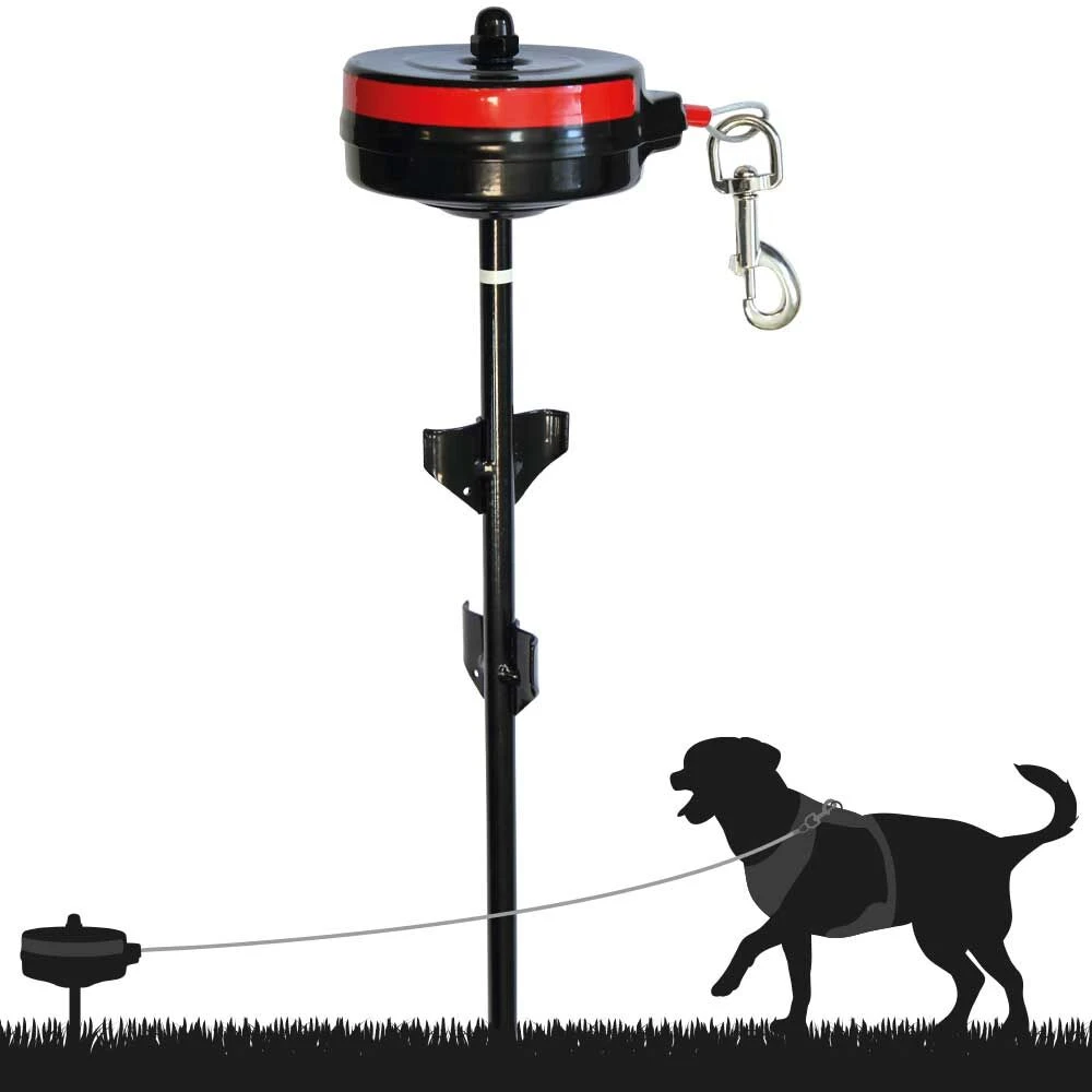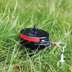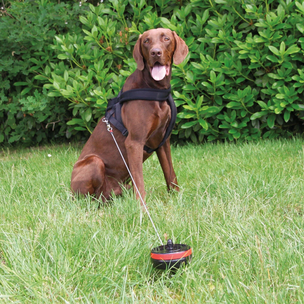 Professionele, vaste rollijn voor tuin, camping en op reis. Geen rondslingerend koord meer, geen risico van in de knoop raken of erger. Vergt slechts een minimale eigen inspanning die de hond nauwelijks stoort. De pen in de grond steken, de lijn vasthaken aan de halsband of het tuig, klaar! Een keurige, eenvoudige en professionele oplossing met goed veel uitloop. En de optimale veiligheid voor hond en baas!