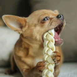 Gegarandeerd extra lang kauwplezier met deze stevige vlechten! De onweerstaanbare smaak van deze klassieker motiveert uw favoriete viervoeter om net zolang te kauwen tot hij helemaal op is. Op deze manier worden de kaakspieren getraind en de tanden beschermd tegen schadelijke aanslag.