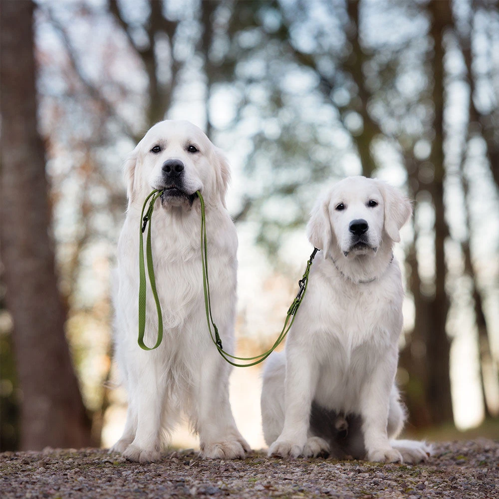 Four-season (4S) all-weather lijnen, gemaakt van superzacht materiaal. De lijnen, die comfortabel en stevig in de hand liggen, nemen geen (regen)water op en blijven ook bij lage temperaturen zeer flexibel. Dankzij het bijzonder zachte materiaal kunnen de praktische 4S-lijnen ook veel kleiner worden opgevouwen dan standaard pvc-lijnen, waardoor ze veel beter in de tas passen. Naast zwart en grijs (petrolgrijs) zijn ze verkrijgbaar in de trendkleur olijf en een duidelijk zichtbaar oceaanblauw. Hoogwaardige, zwarte karabijnhaken geven de duurzame lijnen een prachtige uitstraling.