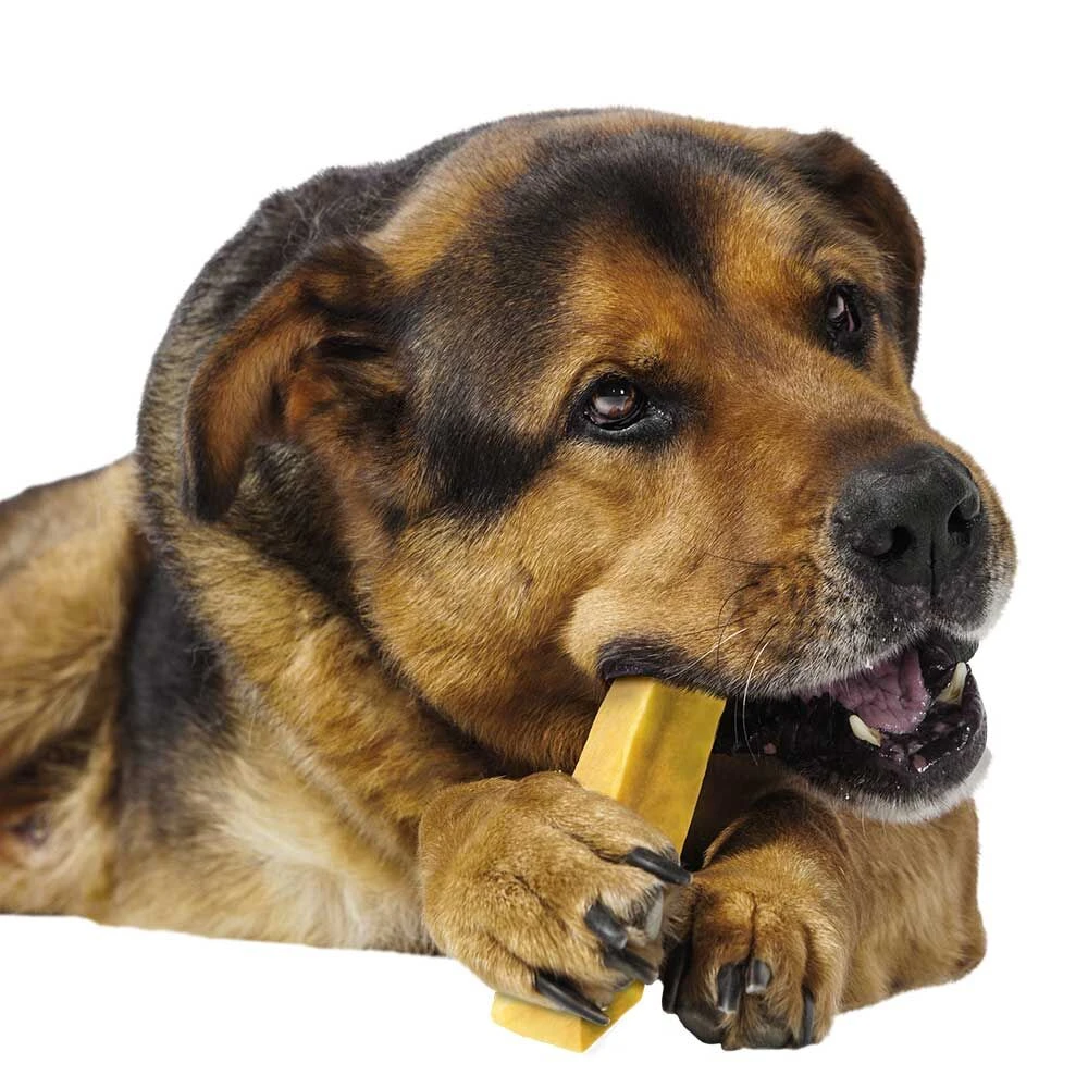 Een zeer harde, goudgele kauwkaas, gemaakt op Nepalese wijze. Deze proteïnerijke, lactosearme snack is natuurlijk, gezond en uw hond zal er lang mee bezig zijn. De kauwreep is lekker en ondersteunt de gebitsreiniging en mondhygiëne. De snack levert bovendien hoogwaardige eiwitten voor het lijf en verzadigt langer dan gewone snacks.