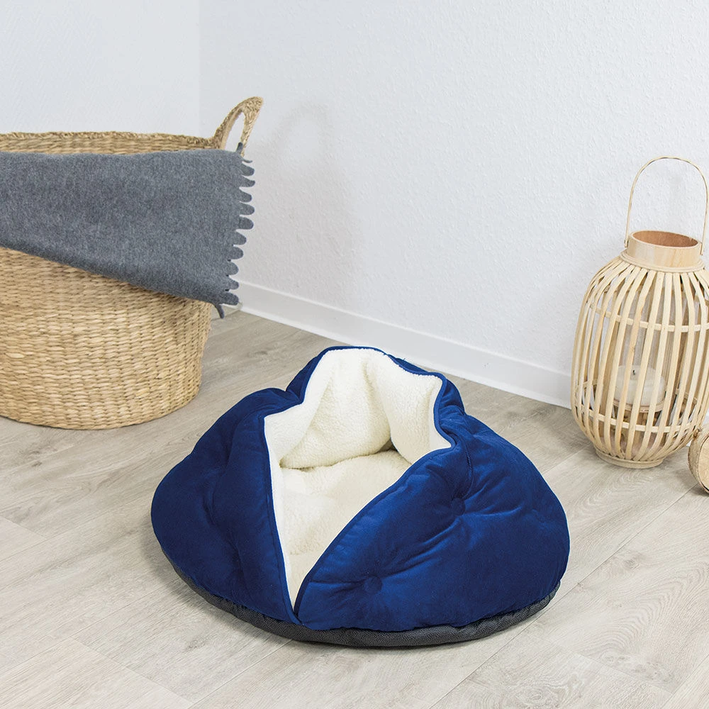 Een koninklijk bed voor uw allerbeste vriend(in) – met ons Schecker hondenbed ‘Carolinensiel’ kunt u uw hond precies dat bieden! Extreem zachte fluwelen stof in koningsblauw en aangename pluche zorgen voor een warme, comfortabele ligplek. De hoge zijkanten van het bed geven uw hond een gevoel van veiligheid – ideaal om op uit te rusten en te ontspannen. De gewatteerde stof houdt de dikke, hygiënische polyestervezelvulling vormvast. De speciale antislipbodem voorkomt dat het bed wegglijdt. Ons Schecker hondenbed ‘Carolinensiel’ is speciaal voor kleine honden die alleen het allerbeste verdienen! Wasbaar op 30°C.