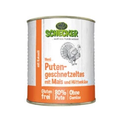 Het bijzonder hoge vleesgehalte vormt de basis voor een uitgebalanceerde voeding. Dit hondenmenu van Schecker bevat alleen kalkoenvlees; het is vrij van kleurstoffen, conserveringsmiddelen en smaakversterkers, en is daarom ook geschikt voor honden met een gevoelige maag.