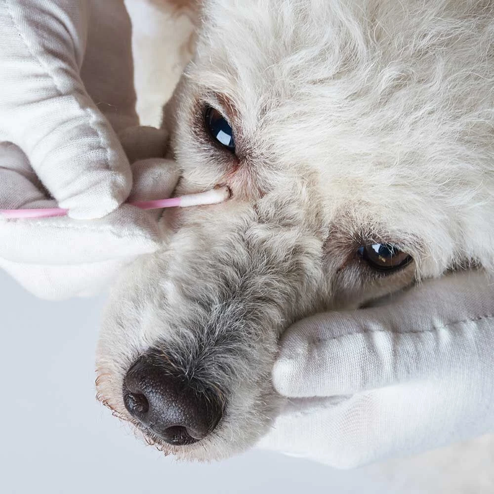 Milde, bijzonder goed te verdragen lotion voor het reinigen van de ogen. Vuil en stof worden opgelost en verwijderd. Bij regelmatig gebruik worden zelfs sterke verkleuringen verwijderd. Verkleuring in een lichte vacht evenals irritatie van het ooglid en bindvlies wordt effectief voorkomen.
