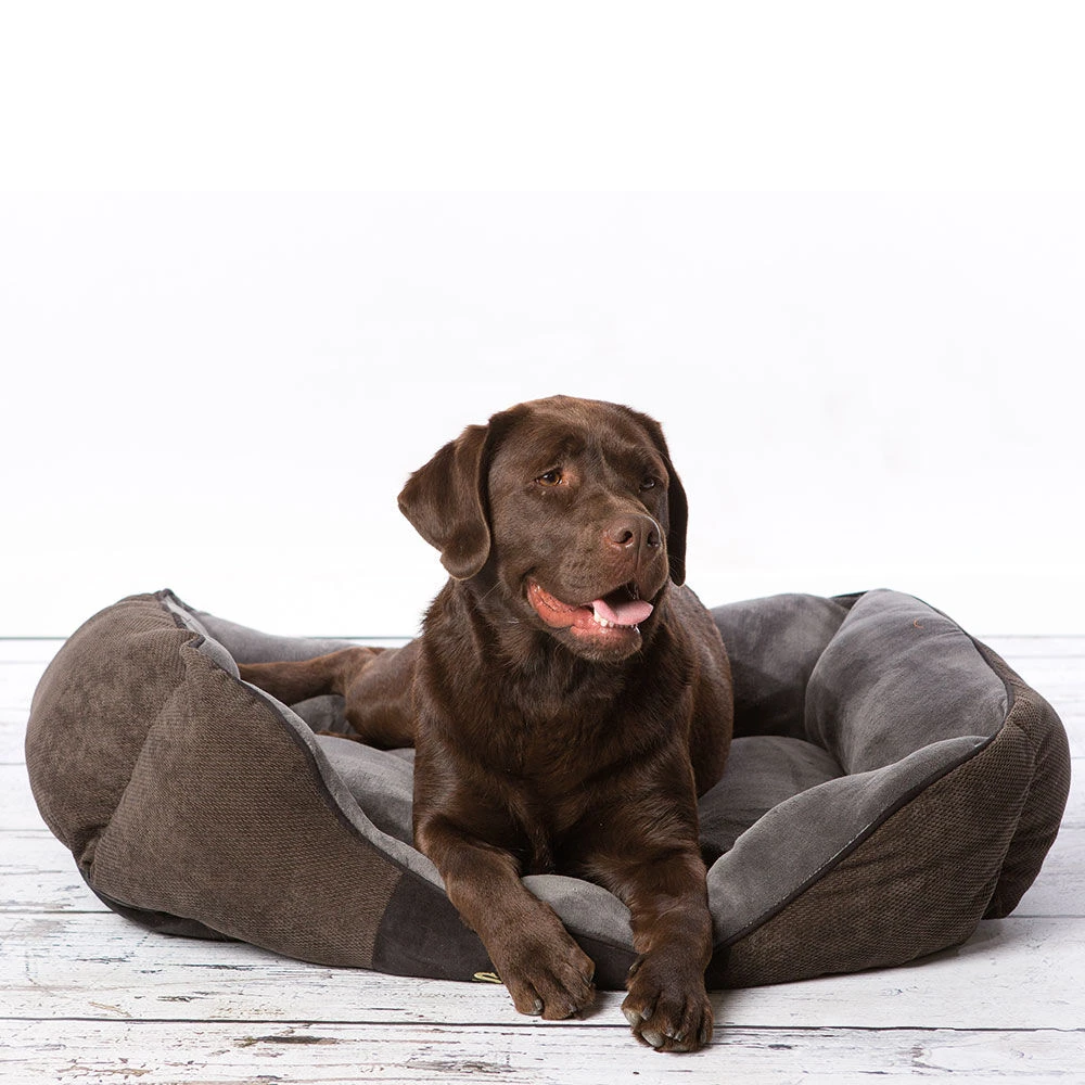 Dit prachtige hondenkussen uit de nieuwe SCRUFFS collection ‘Chester’ biedt veel ligplezier voor de hond. Het ligoppervlak is van een heerlijk zachte en aangename, in kleur afgestemde pluchestof gemaakt. Met een gepaspelde, optisch in kleur afgestemde rand en een gestructureerde buitenkant. De onderkant is uitgevoerd met antislip-noppen, zodat het kussen niet kan verschuiven. De hond voelt zich gewoon helemaal prettig op dit kussen!