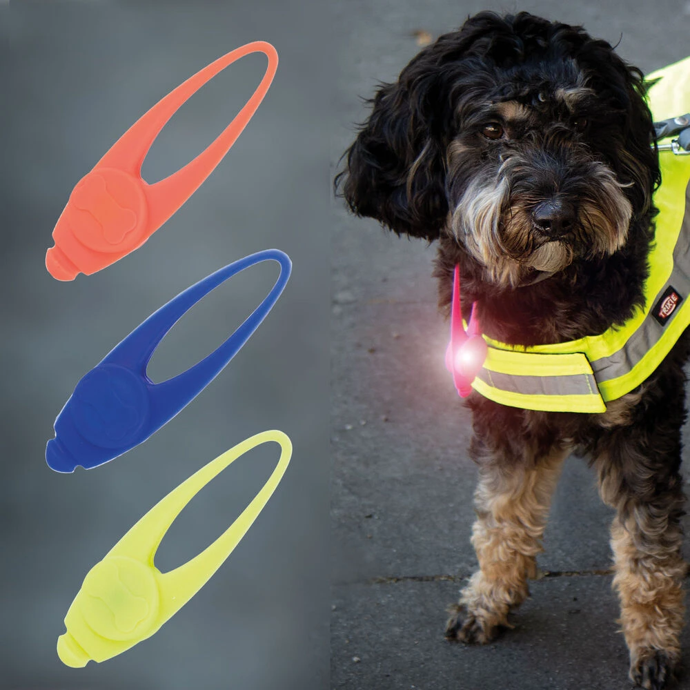 Veiligheidslampje voor honden, met zeer flexibele bevestiging. In te stellen op knipperend of continu licht.