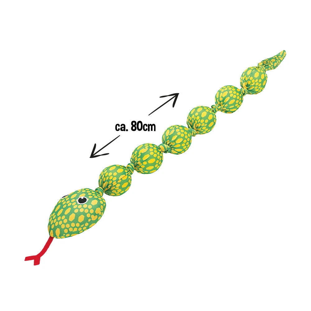 De slang Ballo is een ideaal speeltje voor actieve honden. Met 6 hondentennisballen in zijn lijf zorgt de slang voor veel kauwplezier. Elke bal is op een slimme plek in het polyester lijf geplaatst. De zachte schuimvulling biedt een gevarieerd gevoel als uw hond erin bijt. Het speeltje is ook ideaal om te apporteren. Zwaai de slang als een lasso over uw hoofd en als u hem op het juiste moment loslaat, vliegt de slang super ver! Uw hond zal het leuk vinden om achter het speeltje aan te jagen terwijl hij van zijn instinct gebruik maakt. Voor urenlang speelplezier samen met uw beste vriend.