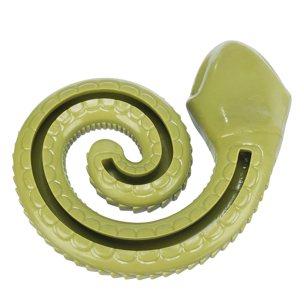 Zachte, opgerolde slang met opening in de buik, die met honden-leverworst of kleine snacks gevuld kan worden. De opgerolde slang maakt het de hond lastiger dan de uitgestrekte snack-slang. Daardoor zal iedere hond hier nog langer mee bezig zijn. Een speeltje dat het geduld en de handigheid van uw hond spelenderwijs traint.