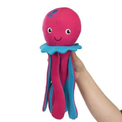Met zo’n glimlach kan geen enkele hond deze kwal weerstaan! Het speelgoed is gemaakt van robuuste, weerbestendige stof en is ideaal om mee te spelen op het strand of in de tuin. Door de felle kleur is het waterspeelgoed snel terug te vinden. Knisperende folie in de tentakels en een pieper stimuleren het speelinstinct.