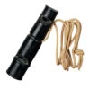 Lengt: 8 cm, met een 50 cm lange ketting en met bevestigingsmogelijkheid voor in een knoopsgat.