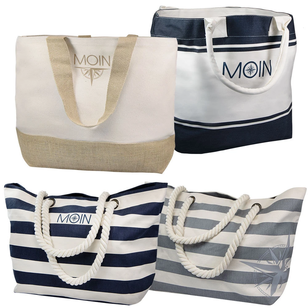 Strand- en allroundtas met modieuze uitstraling. De strepen, de hoogwaardige koorden en de decoratieve ‘Moin’-print geven de tas een stijlvolle, maritieme uitstraling. Ook biedt de tas voldoende ruimte voor alle dingen die u en uw hond onderweg nodig hebben. Het praktische binnenvak met ritssluiting zorgt dat uw mobiele telefoon, sleutels en portemonnee veilig zijn opgeborgen.