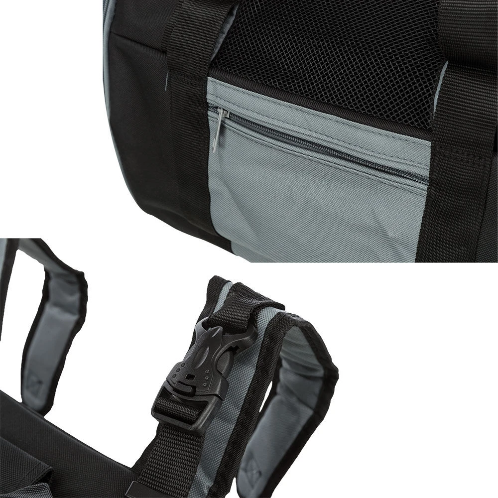 - Een geïntegreerde korte riem voorkomt dat de hond uit de rugzak springt