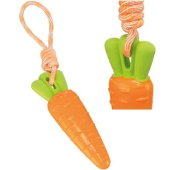 Duurzaam hondenspeelgoed met pieper. De wortel is gemaakt van gebitsvriendelijk, hygiënisch TPR-rubber. Het stevige polyester touw is geschikt voor gooi-, trek- en schudspelletjes met uw beste vriend. Een geweldig, weerbestendig speeltje voor het hele jaar door waar uw hond zeker blij mee zal zijn!