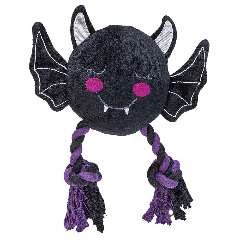 Eng en schattig tegelijk: deze vleermuis met katoenen touw is het perfecte speelgoed voor Halloween. Met de hoogwaardige katoenen touwen is hij ideaal om mee te gooien en te apporteren. De touwen helpen ook nog eens spelenderwijs de tanden schoon te maken door de aanslag eraf te schrapen. Een pieper en knisperfolie in de vleugels zorgen voor extra speelplezier.