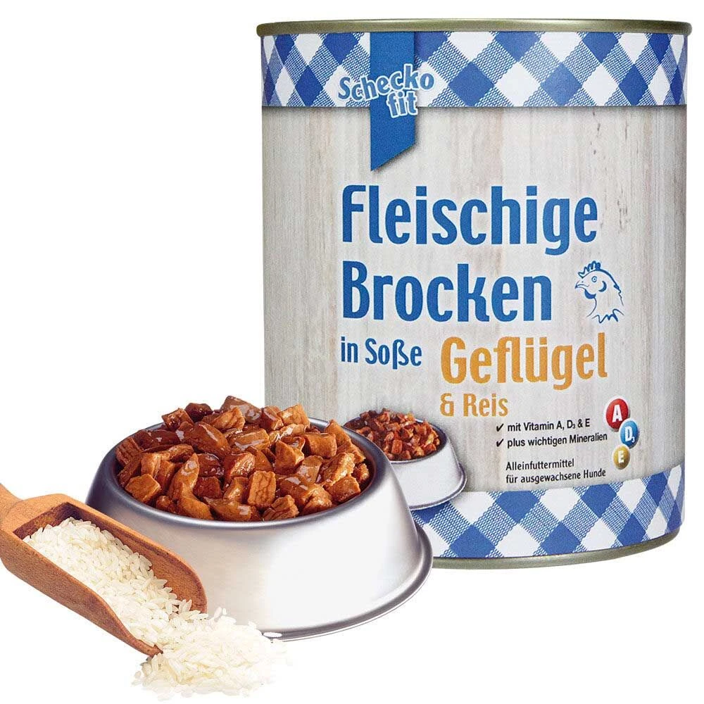 Mooie grote brokken in een deftige saus. Uw hond zal van dit menu houden! In alle soorten blikvoer van Schecko fit zit alles wat een hondenlichaam nodig heeft. U kunt alleen dit blikvoer geven.