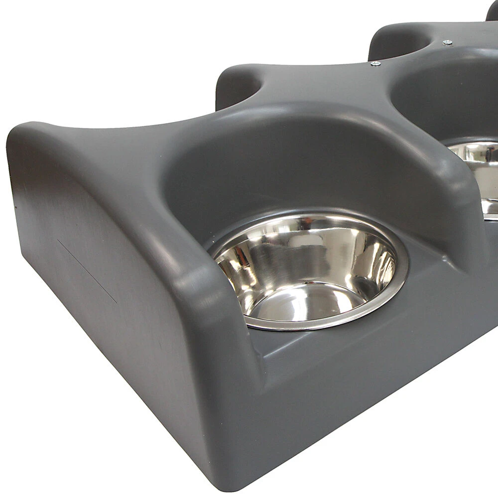 De Weanafeeda is een multi-voerbakhouder voorzien van hoogwaardige edelstalen bakjes en verkrijgbaar in 2 afmetingen: